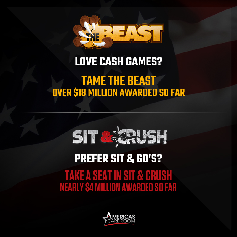Now, we don’t have any advice to give you about death and taxes, but we can tell you about how Americas Cardroom is rewarding you every week. It’s their Beast and Sit & Crush weekly rake races and they have the following details: